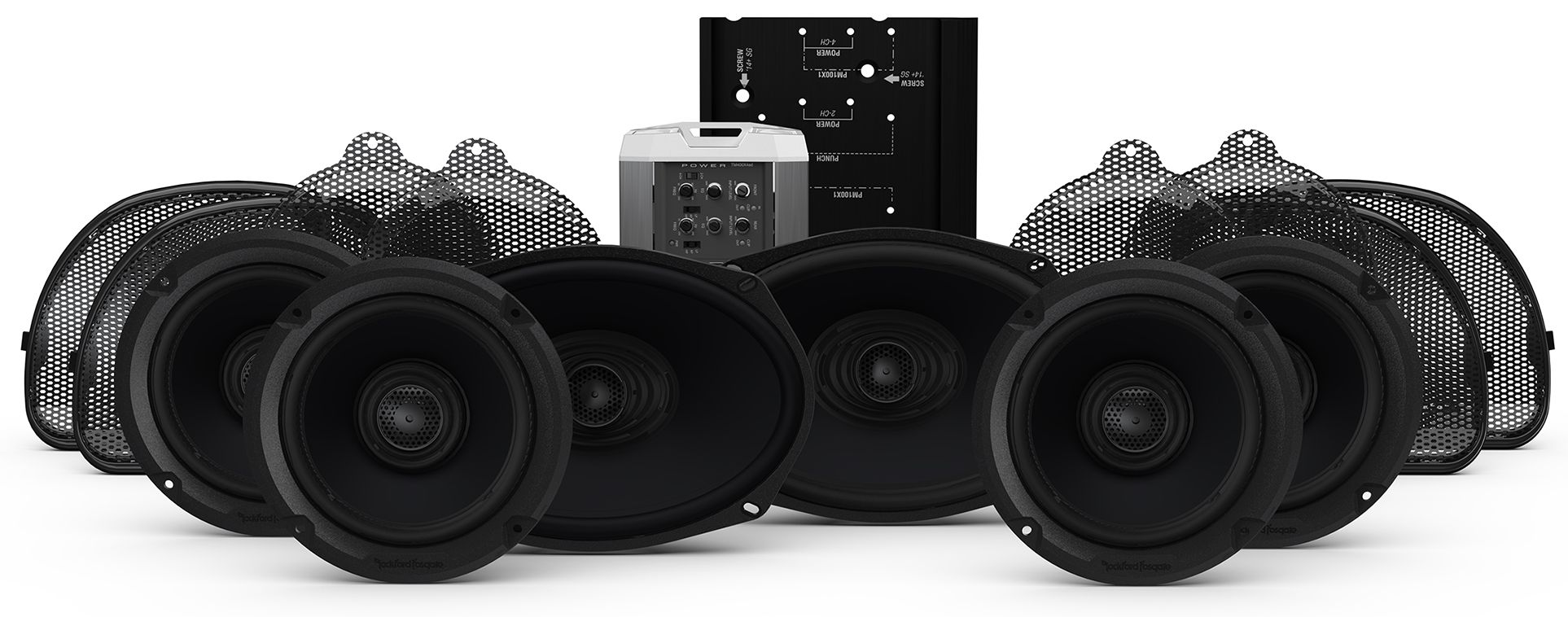 This 6-speaker, 400 watt high performance audio system is designed for select 2014+ Harley-Davidson® motorcycles (see compatibility chart.) The included 6.5” upper/lower fairing speakers and 5x7” saddlebag lid speakers are frequency-response tuned to overcome wind, exhaust, and road noise up to 75 MPH. The 400-watt amplifier features 2-channels for the upper/lower fairing speakers and 2 channels for the rear baglid speakers. The amplifier installation kit includes an external heat-sink, mounting brackets, speaker and power wiring with all necessary hardware. The included T-harness integrates into the electrical system for front/rear fading capability (requires Rockford Fosgate flash) and features a loop-thru for an optional DSR1 digital signal processor (sold separately.) Supplied with factory amplifier bypass plugs. You will need to flash your factory radio to use this kit. Ready to flash? Here’s a list of dealers that can flash your radio.