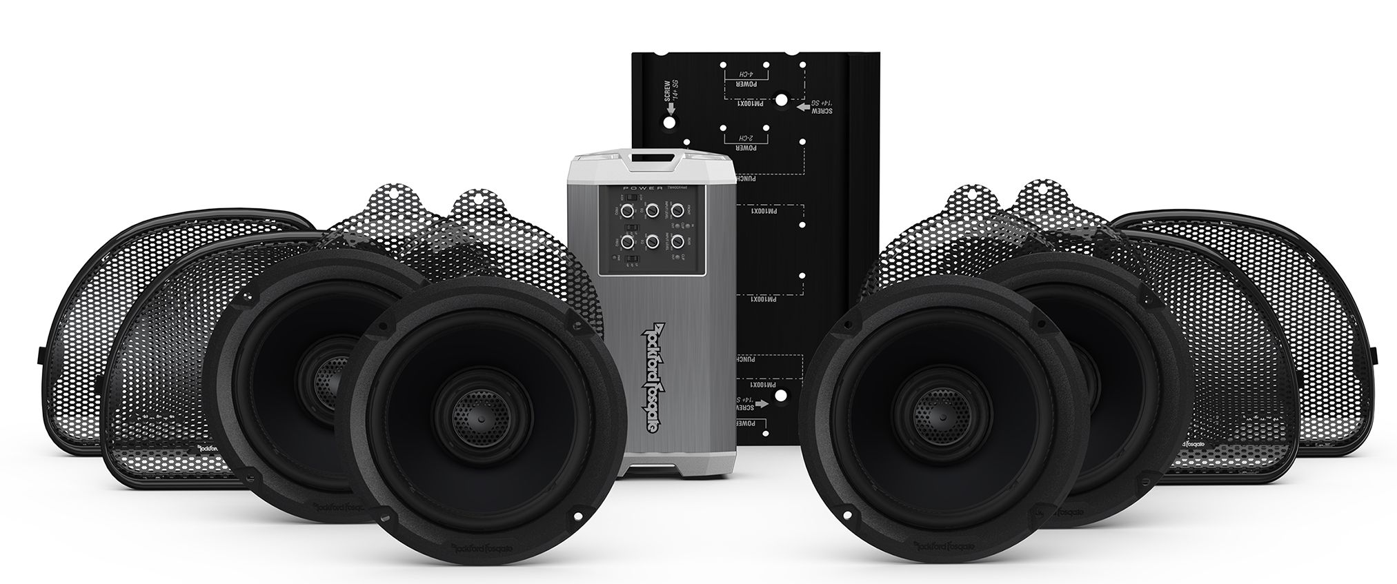 | Included In The Box | (4) TMS65 Speakers, (2) 2015+ Road Glide Grilles, (2) 2014+ Street Glide Grilles, (2) 2014+ TourPak Grilles, (1) TM400X4ad Amplifier, (1) RFK-HD14 Amp Mounting Kit, (5) Factory Amp Bypass Plugs, (1) DSR1 Loop-Thru Harness, (2) Amp Output Y-Adaptors, (1) Wiring Harness Kit, (1) Hardware Pack |