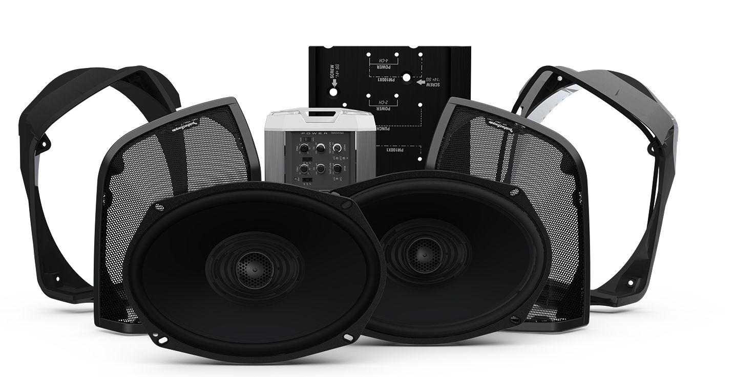 | Included In The Box | (2) TMS69 Speakers, (2) 2014+ Road King Grilles, (1) TM400X4ad Amplifier, (1) RFK-HDRK Amp Mounting Kit, (1) RFBTRCA, (1) Wiring Harness Kit, (1) Hardware Pack |