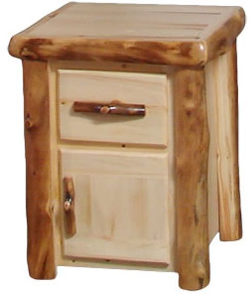 Flat front 21"W nightstand in natural panel and natural log with one door and one drawer.Read More