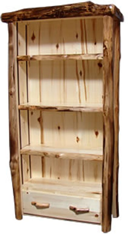 39"W Tall bookcase with three shelves and one drawer. Made of natural panel and natural log in rustic style.Read More