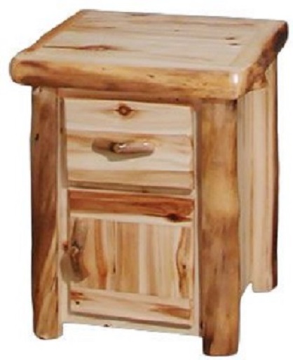 Flat front 21"W nightstand in wild panel and natural log with one door and one drawer.Read More