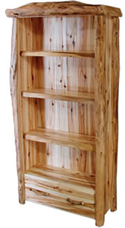 39"W Tall bookcase with three shelves and one drawer. Made of wild panel with more noticeable deeper wood grain character and natural log in rustic style.Read More