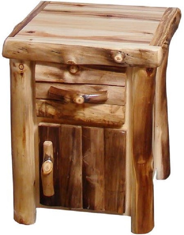 Log front 21"W nightstand in natural panel and natural log with one door and one drawer.Read More