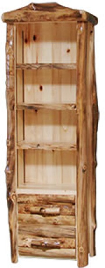 27"W Tall bookcase with three shelves and two drawer. Made of natural panel and natural log in rustic style.Read More