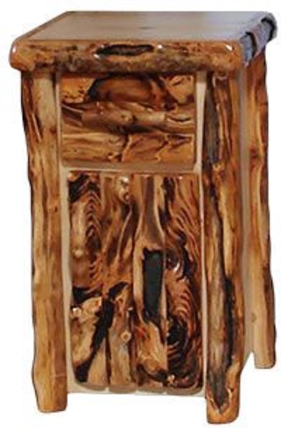 Log front 21" tall nightstand in natural panel and gnarly log with one door and one drawer.Read More