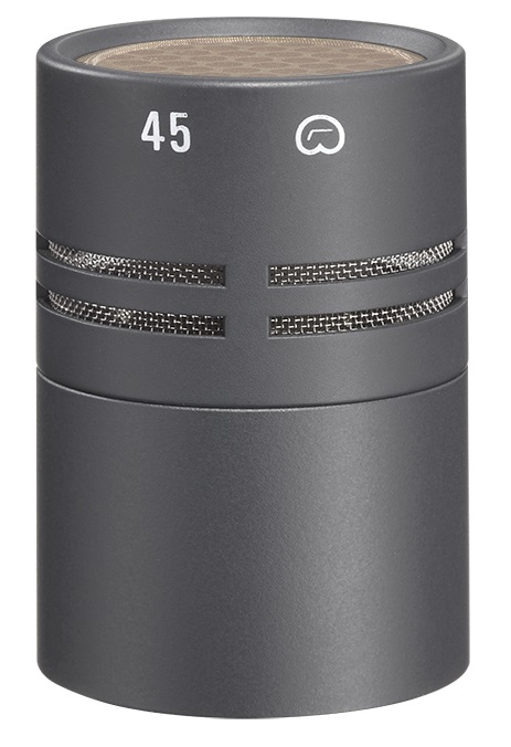 AK 45 is a pressure gradient transducer with cardioid characteristic just like the AK 40. However, it has an acoustic bass roll-off characteristic in the free field and therefore suppresses interfering LF noise (wind, structure-borne noise).
