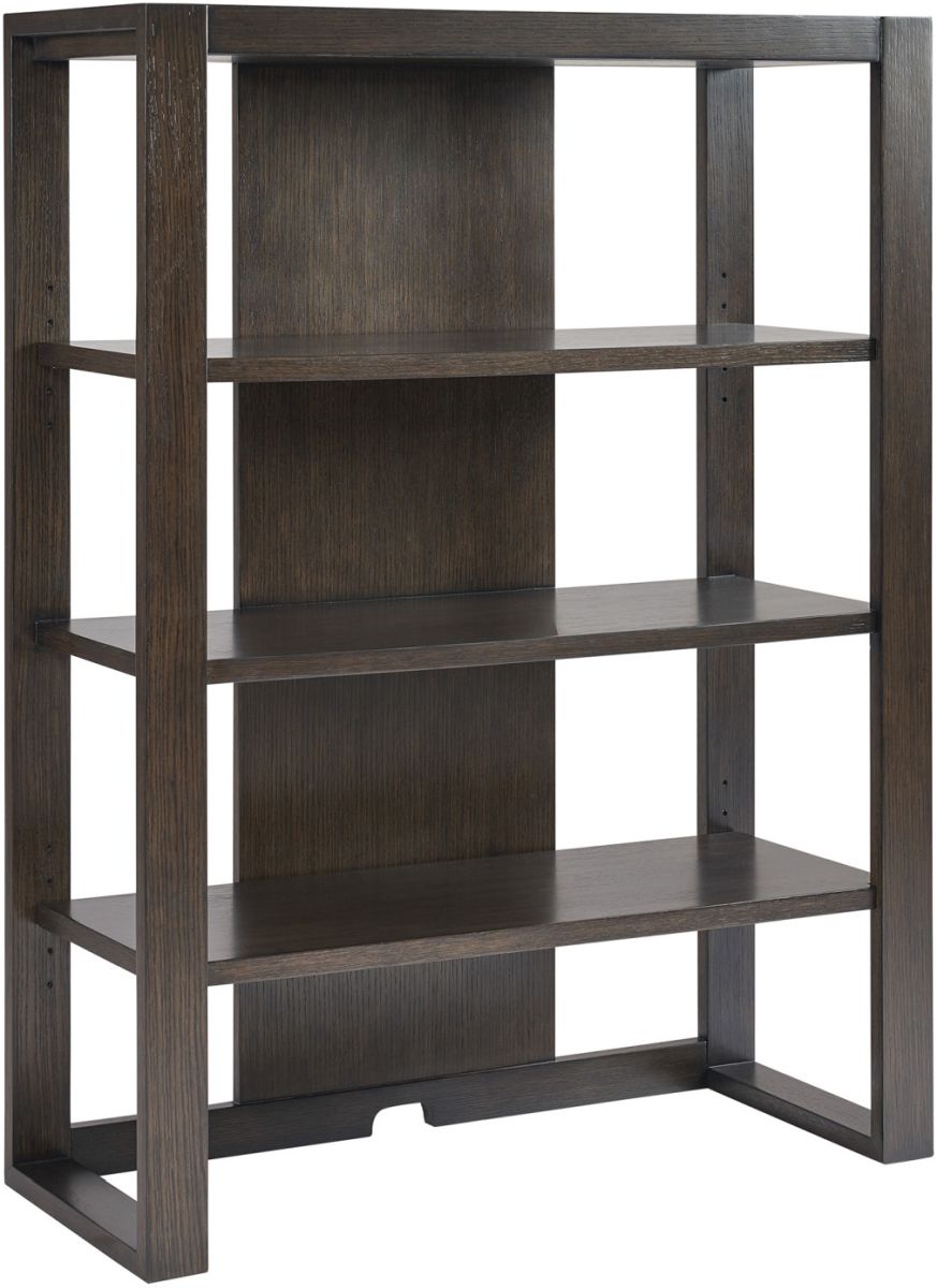 Featuring a stationary wooden shelf in the center, with an adjustable wooden shelf above and below. The vertical back panel has an open area on the left and right creating a visual airyness for display. Open end panels create an attractive view from any direction.Read More