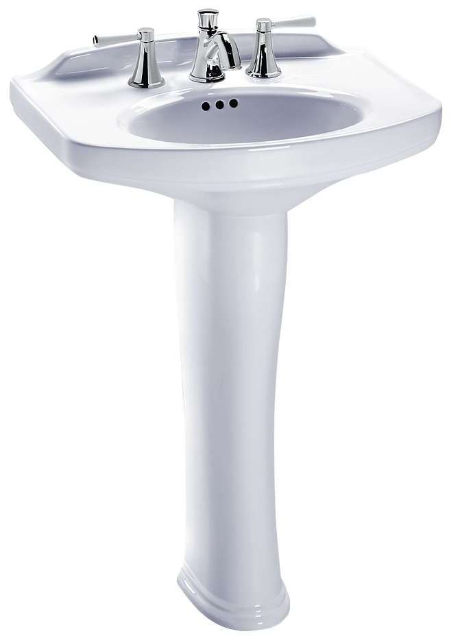 Transitional in design, this pedestal lavatory features a deeply generous basin and rear overflow. Universal height.Read More